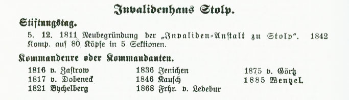 1811 erfolgte die Gründung des Invalidenhauses Stolp.