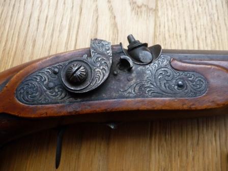 Kann jemand etwas Näheres zu der seit ca. 100 Jahren in Familienbesitz befindlichen Perkussionspistole sagen (Verwendung,Alter,Herkunft)? Die Waffe trägt auf dem Lauf die Aufschrift: Carl Goltz a Bromberg.