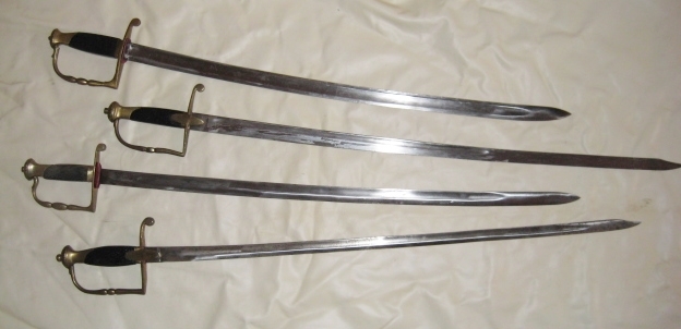 4 verschiedene Modelle der gleichen Art, mit unterschiedlichen Klingen, mal mit,-mal ohne Mitteleisen und manchmal auch mit Horngriff