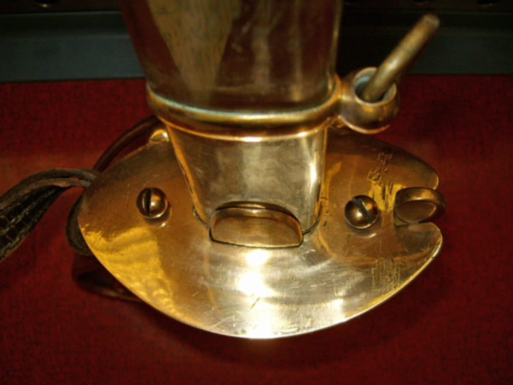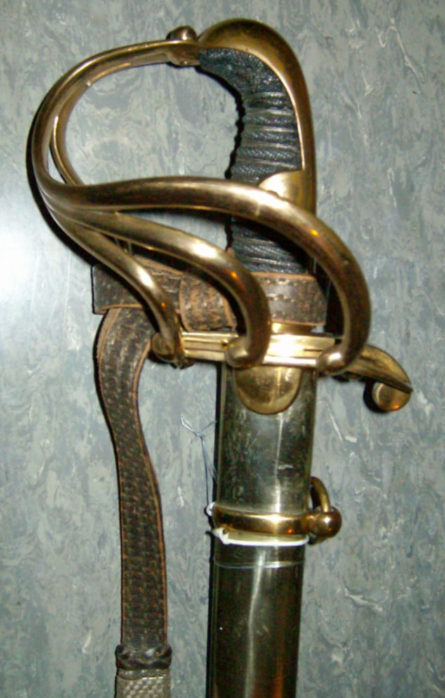 Ich kenne einige Originalfotos aus der Zeit zwischen 1864 und 1871, bei denen ein Anschraubkorb zu sehen ist. Zumindest hat bei DIESEN Bildern das Mundblech keine Ringöse mit Tragering, sondern ein unter dem Tragehaken aufgeschobenes Band mit Ringöse und Tragering. Ich würde daher das hier gezeigte Mundblech eher bei einem anderen Säbel vermuten.