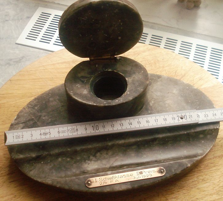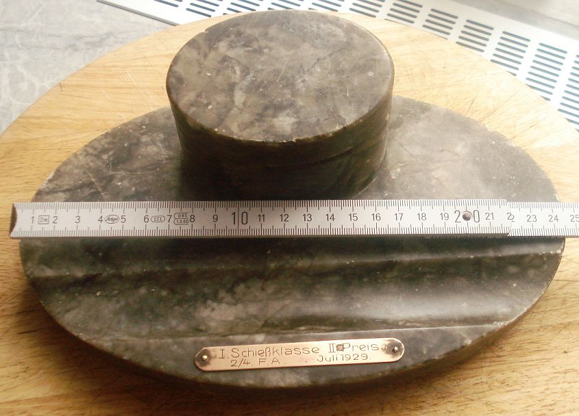 im Erlass des Chefs der Heeresleitung zur einheitlichen Regelung der Stempelung von Waffen und Gerät vom 01.11.1922 ist für die 7. (Bayerische)Fahrabteilung der Stempel: "F.A. 7" vorgesehen (wenn man Wacker/Görtz glauben darf) - aber egal, ein nobler Schießpreis für einen 2. Platz! Ich habe vor über 20 Jahren beim Regiments-Offizierschießen mal den 1. Preis gewonnen - das war nur eine Urkunde :( . Tja, die Zeiten ändern sich...