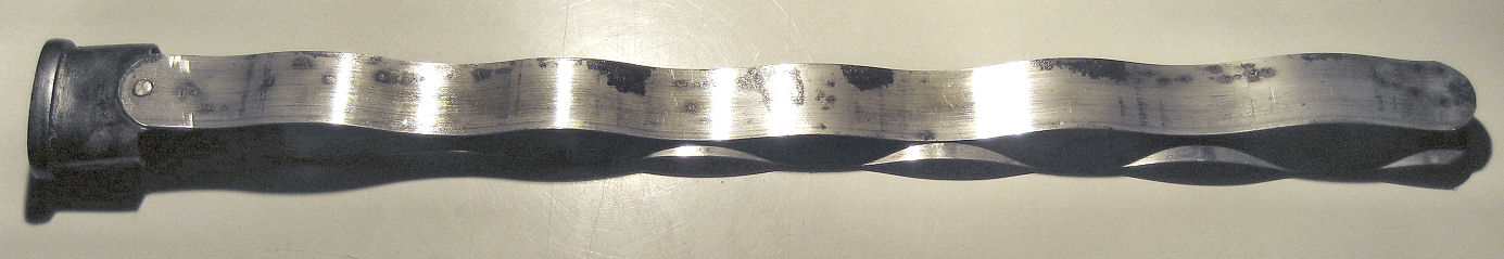 Federbandstahlstreifen statt Holzspänen in der (Gussstahl-) Scheide.