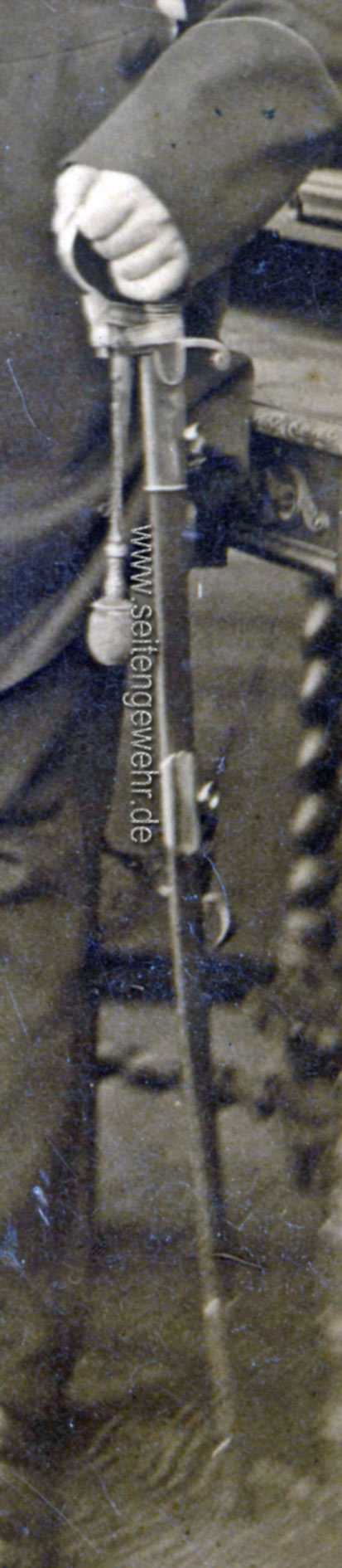 Hier einmal das Bild einer weiterverwendeten und dabei vermutlich umgebauten Blankwaffe an der Seite eines Berliner Feuerwehrmannes (?).