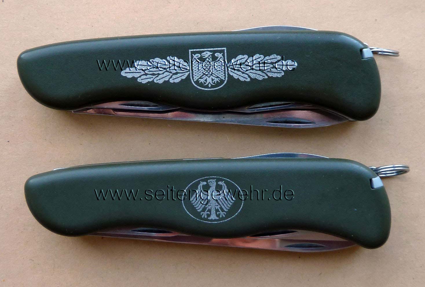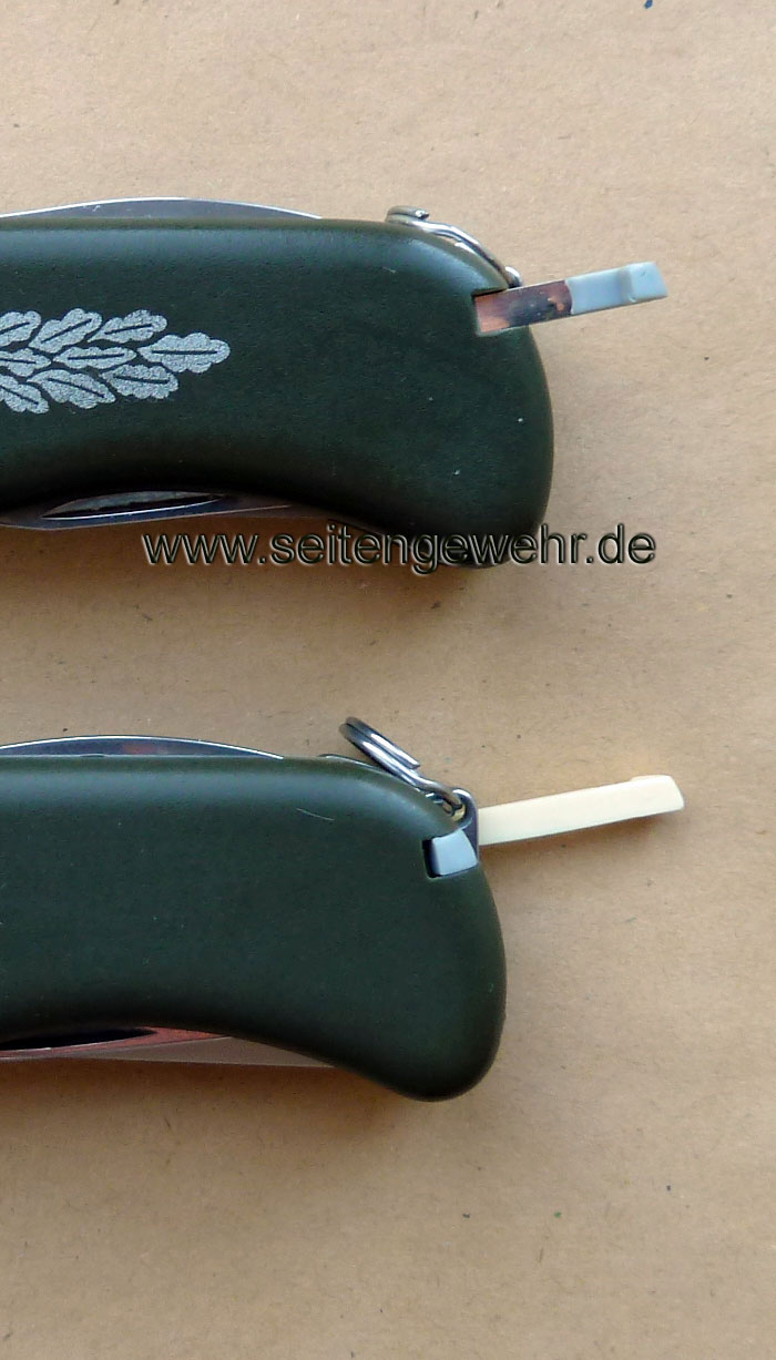 Grenzschutzgruppe 9 (GSG 9) ein Messer der schweizer Firma Victorinox beschafft. Erkennbar u.a. am aufgedruckten Tätigkeitsabzeichen der GSG 9 auf einer Griffschale.