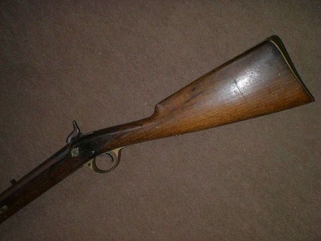 Hallo Forum, ich habe vor einigen Tagen dieses Perkussionsgewehr erworben und würde gern etwas über die Herkunft, Fertigungszeit,regionale Zuordnung herauszufinden. Weder im Internet noch in meinen Unterlagen, Büchern konnte ich fündig werden. Es sind, außer den von mir photographierten Buchstaben, keine weiteren Stempel vorhanden. Die Gesamtlänge beträgt 132.8 cm. Kaliber 17 mm. Vielleicht, hat corrado26 :) einen weiterführenden Hinweis, sein Fachwissen scheint unerschöpflich zu sein. Allen ein frohes Osterfest. Gruß sonjar