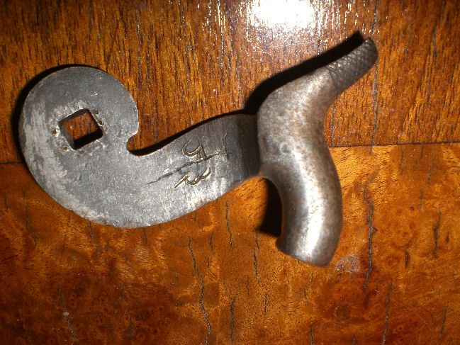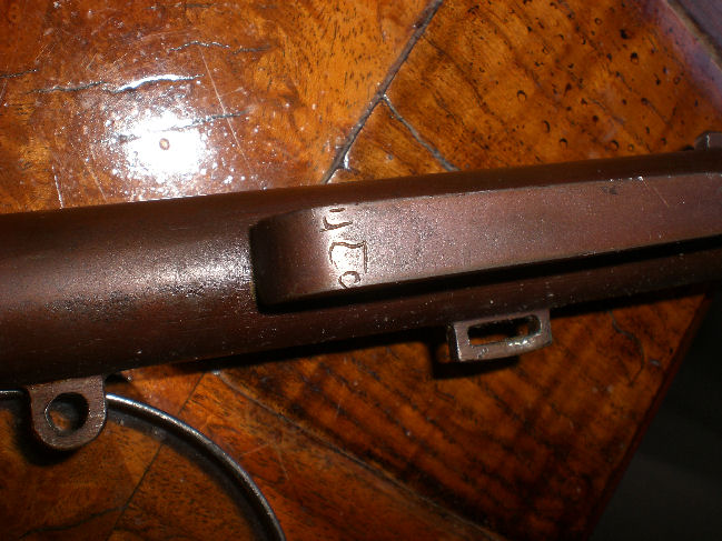 Das totale Fehlen jeglichen britischen Abnahmestempel (z.B. auf der Innenseite des verkehrt-herum gezeigten Hammers)oder Truppenstempel deutet auf nepalesisches Eigenbau. Dreht man das Bild vom Hammer richtig herum, ist die Markierung dieselbe wie auf Schaft und Abzugsbügel und ist ein Waffennummer. Ich denke es ist 68, aber das Lesen von nepalesischen Handschrift des 19ten Jahrhunderts ist nicht gerade meine Stärke...