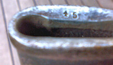 Beim M/52 sind Säbel, Scheidenkörper und Mundblech mal mit der gleichen, zu "E.I." gehörenden Waffen-Nr. "45" gestempelt worden.