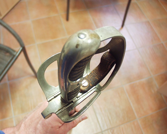 Jetzt läßt sich natürlich über eine verbastelte Waffe spekulieren. Wobei der Säbel und die Angelvernietung zumindest auf den Bildern keinen schlechten Eindruck hinterläßt. Die Quernieten scheinen nur angedeutet zu sein?