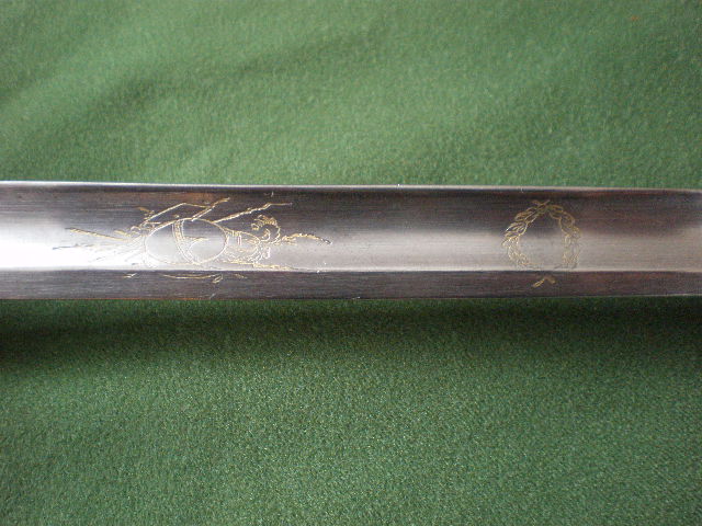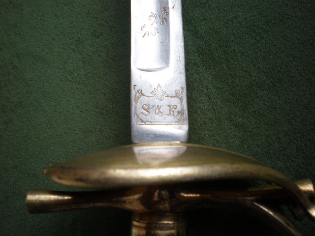 Dekor ( Ranken und Trophäen ).Hersteller ist Schnitzler und Kirschbaum .Leider wurde der Degen zum Reinigen geöffnet und die Griffwicklung wurde ergänzt.