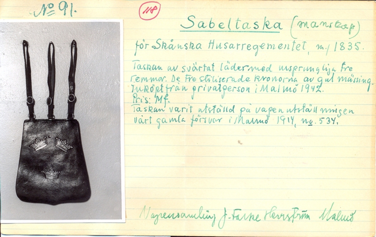 ich weiß dass die meisten von Euch Geschichte und Geschichten mögen. Die nachfolgend aufgezeigte Säbeltasche kaufte ich als "Beiwerk" zu einer sehr seltenen Säbeltasche um 1790. Diese werde ich auch demnächst vorstellen. Wer nicht warten kann - siehe mein WEB-Site. Es handelt sich um die Einheitssäbeltasche m/1835 für die Säbeltasche tragende Kavallerie. Sie kommt noch sehr häufig vor. Hier war dann der Begleitzettel sehr interessant.