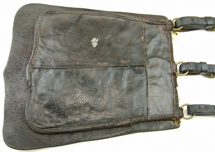 Die Tasche besteht aus schwarzem Leder mit den ursprünglichen drei