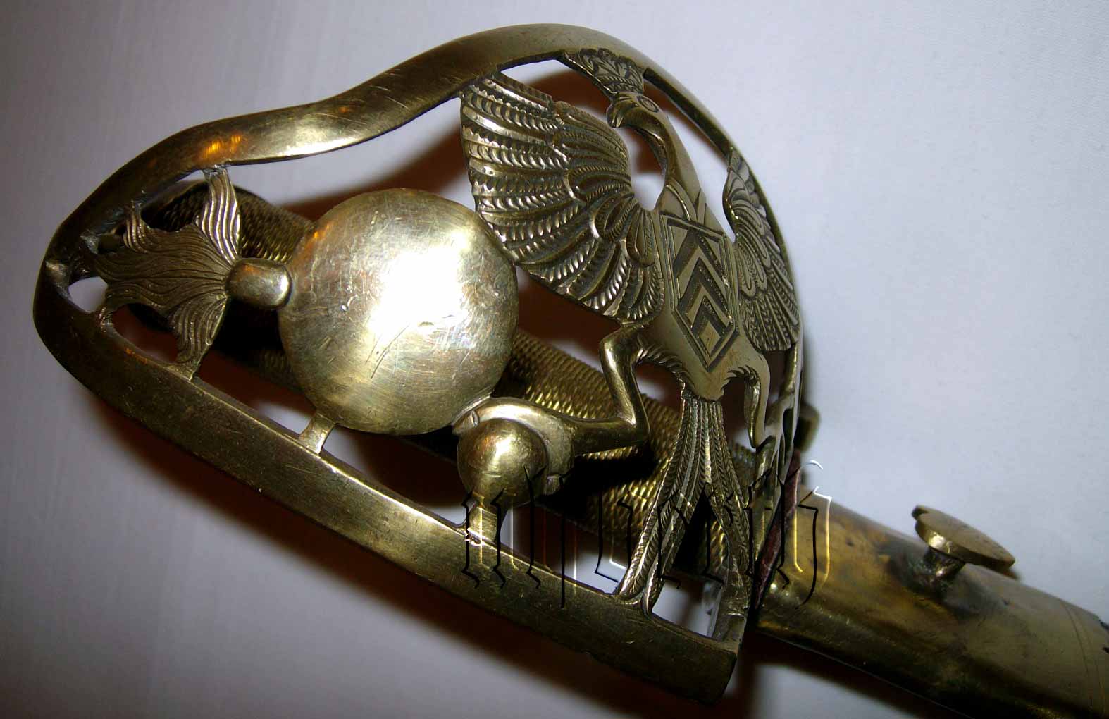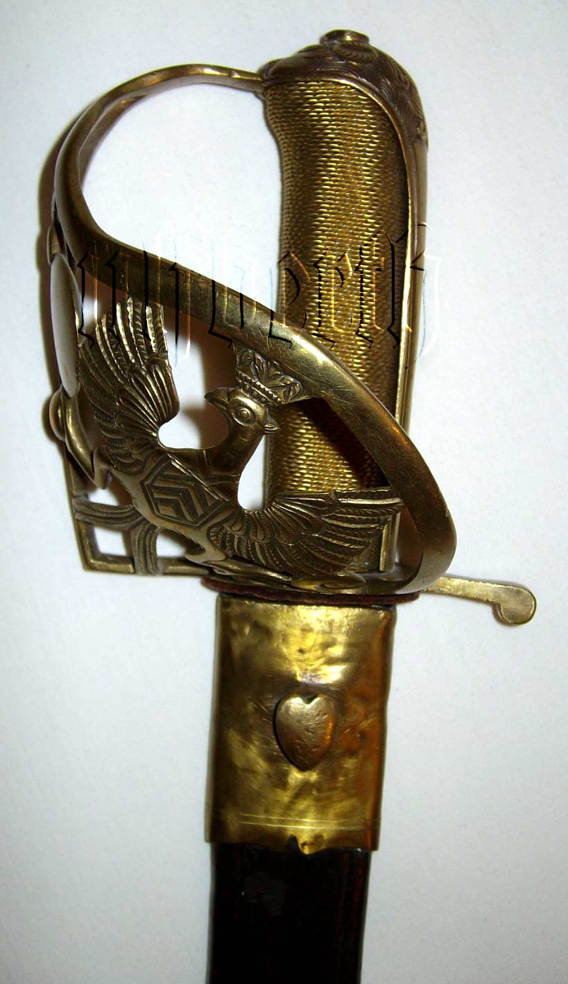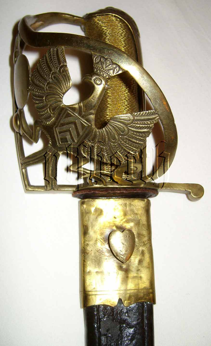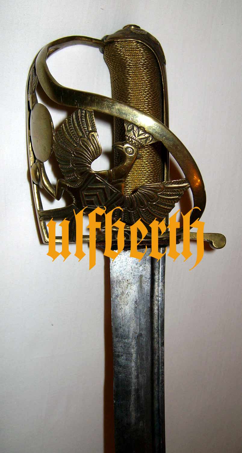 Auch dokumentierte Stücke mit Adler – ähnlich dem preußischen Vorbild - im Korb, zielen zwar auf Preussen ab, stehen aber nicht für eine diesbezügliche Verwendung. Gleiches gilt auch für eine Klingeninschrift: Vive le Grand Frédéric!
