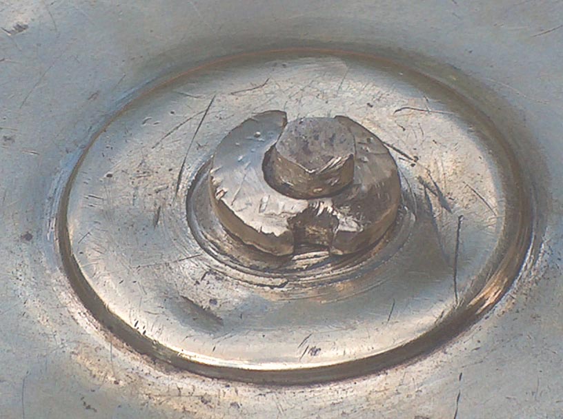 Die Schraube wurde irgendwann mal verkantet, da sie nicht mehr hielt. Das Maßband wurde beim letzten Besitzer als solches dauernd genutzt.