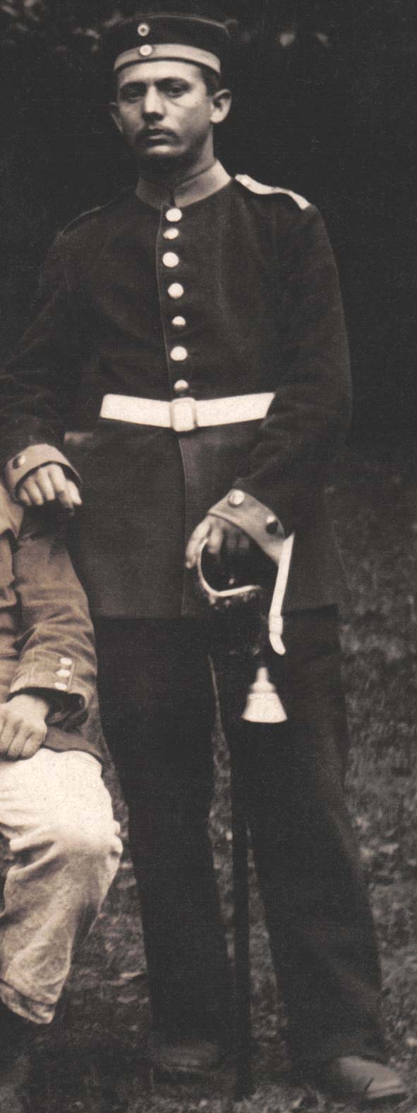 mit Lederfaustriemen am A.S. in der linken und Pfeifchen (Zigarrenspitze?!) in der rechten Hand - ein etwas lieblos mit schneller Hand coloriertes Foto vor 1897, aber: es zeigt die Farben und die "11" ist nicht zu übersehen!