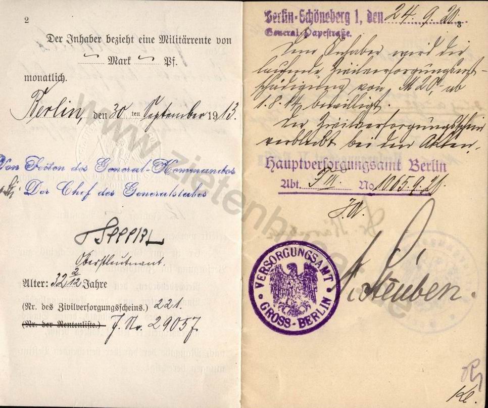 In diesem Zivilversorgungsschein ist auch die Unterschrift von Johannes Friedrich Leopold von Seeckt (* 22. April 1866 in Schleswig; † 27. Dezember 1936 in Berlin) zu finden.