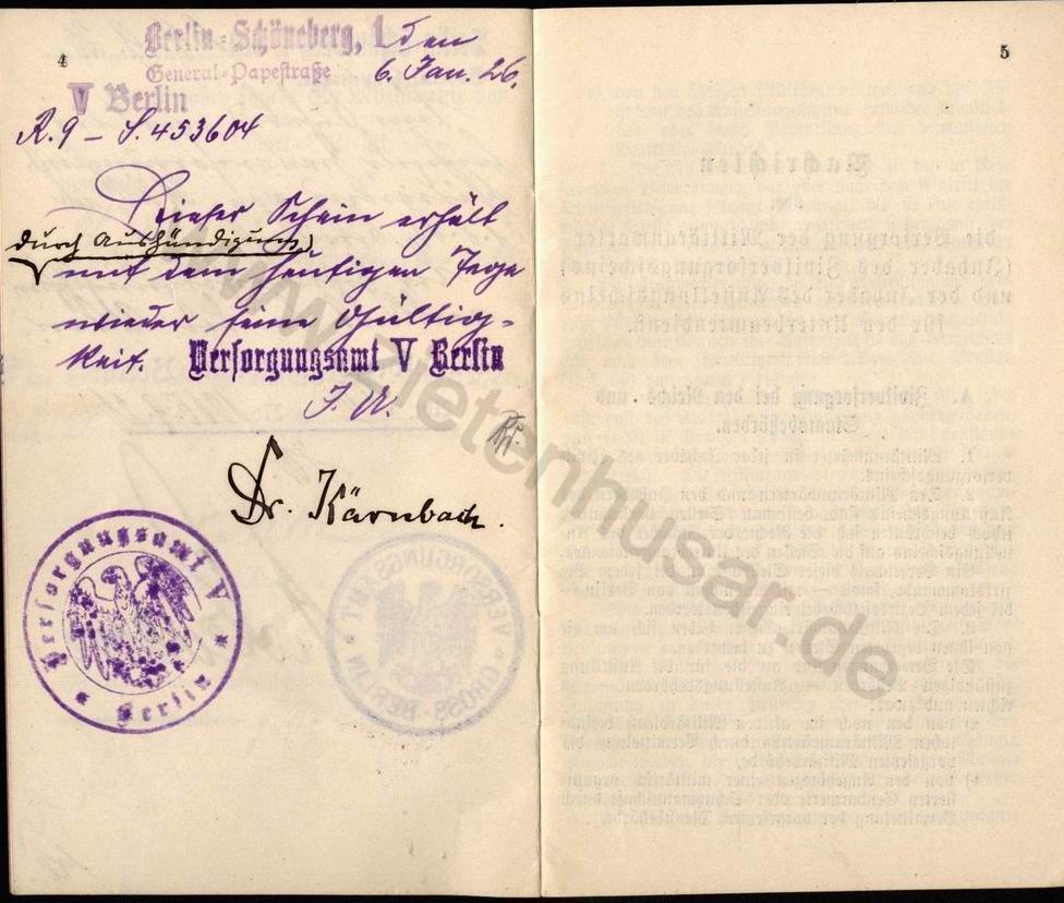 Zum Nachlesen die im Zivilversorgungsschein enthaltenen