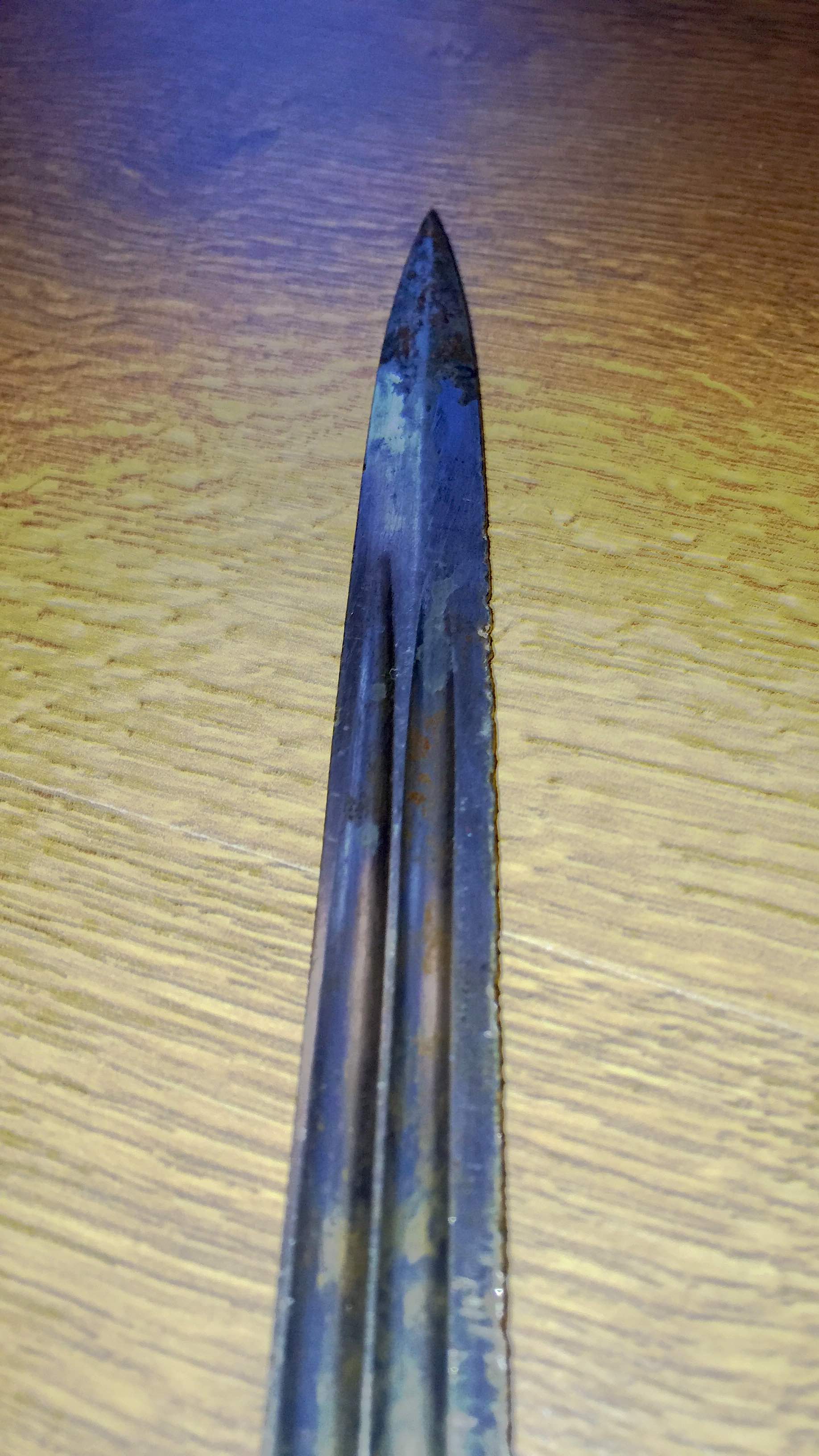 Die Scheide ist ja schwarz lackiert. Man kann aber erkennen, dass sie unter dem Lack gerostet ist. Lieber so lassen oder Lack entfernen und Rost behandeln?