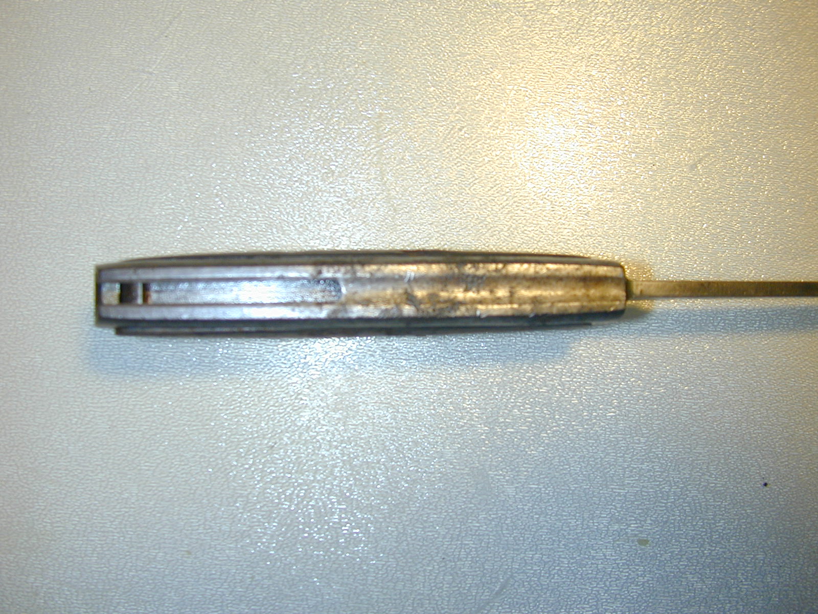 durch eine Blattfeder in der Metallhülse arretiert. Durch Betätigung des Drückers kann man