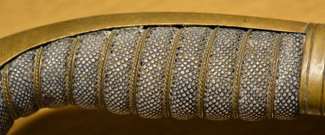 - Beschichtung der Metallteile (lackiert, vernickelt, vergoldet...): Scheide außen relativ schwarz (geschwärzt?)