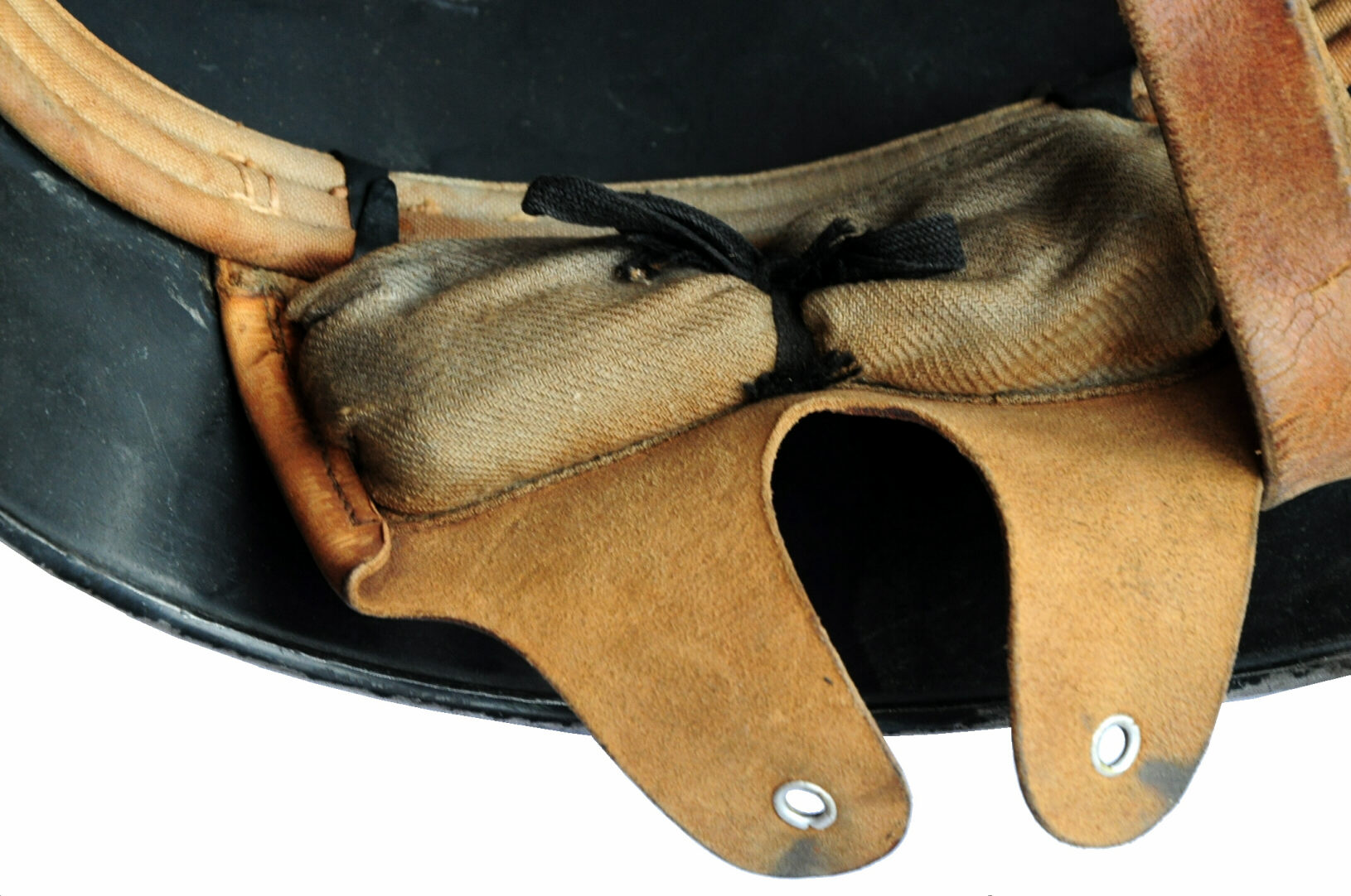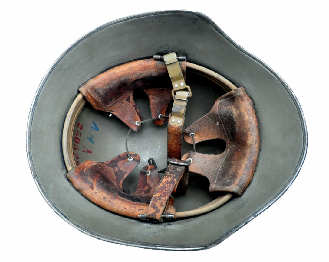 Der Kinnriemen war bei den ersten M18 Stahlhelmen beidseitig fest