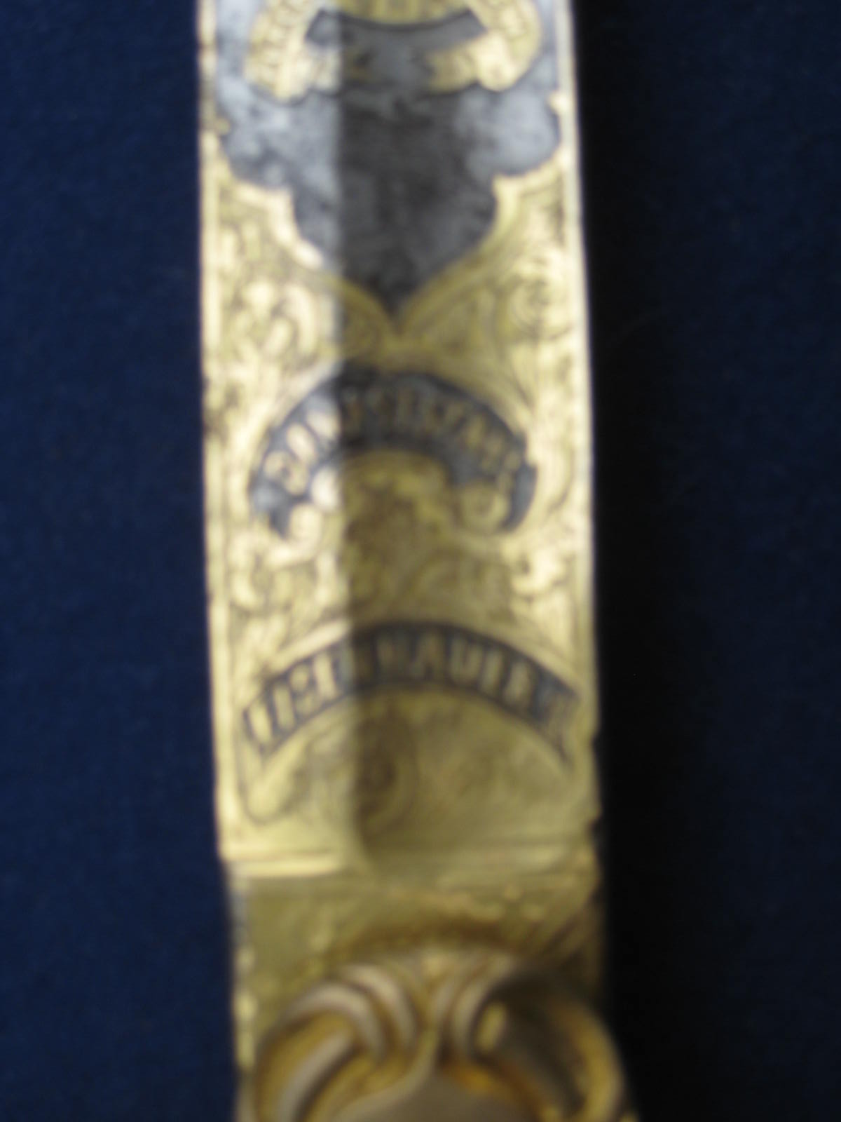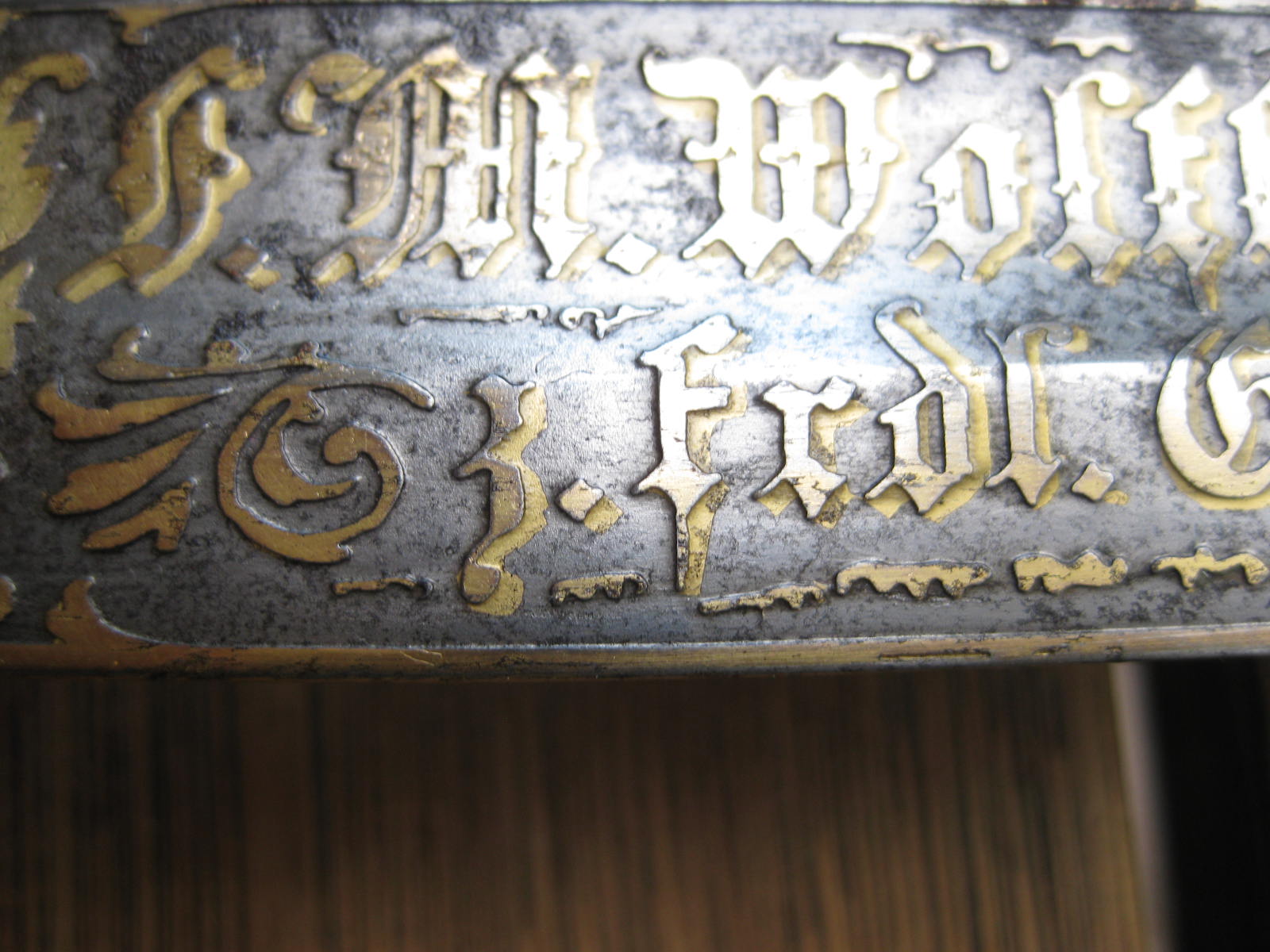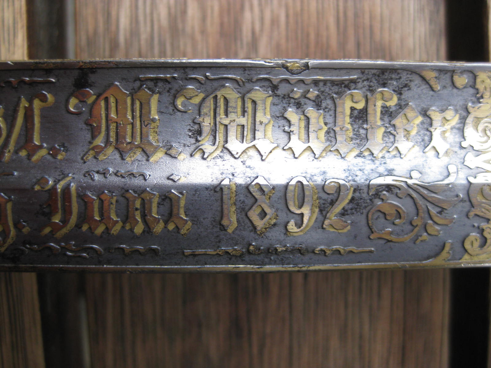 Inschrift auf einem Offizierssäbel des Leibgrenadierregiments Königin Olga