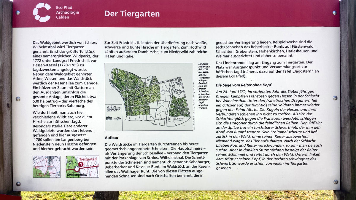Schloss Wilhelmsthal in der Nähe von Kassel führt, sind die folgenden Informationstafeln zur Regionalgeschichte der höfischen Jagd im 18. Jahrhundert aufgestellt.