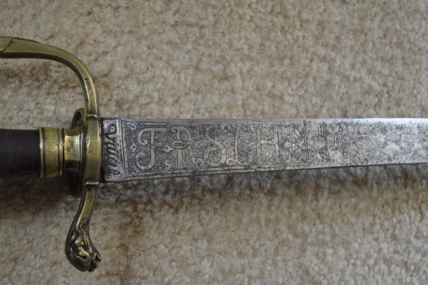 Schön verzierter Hirschfänger, beidseitig auf der Klinge: "