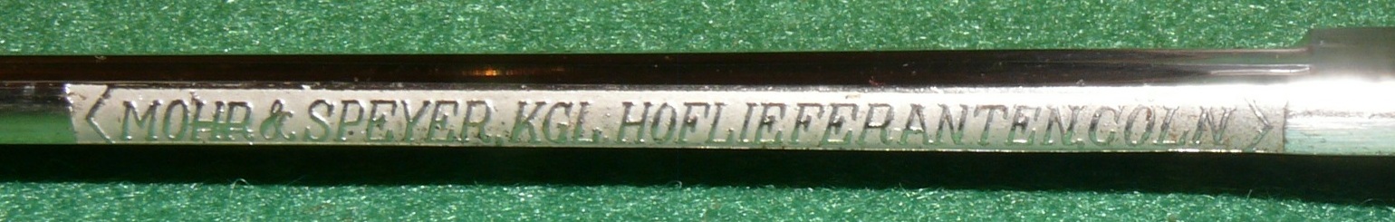 Im Klingenrücken steht die Händleraddresse Mohr & Speyer, Kgl. Hoflieferanten Cöln.