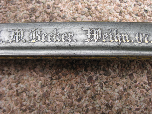 Dieser Beitrag löste bei mir im Lesen eine Erinnerung aus. Vor etwa 30 Jahren erstand ich einmal eine Art Schleppsäbel, typische Trageweise nach 1905, für Füselieroffiziere. Das Stück ist eine Fertigung von WKC (Ritterkopf) mit Damastklinge, teilvergoldet und Steckrücken mit Schör.