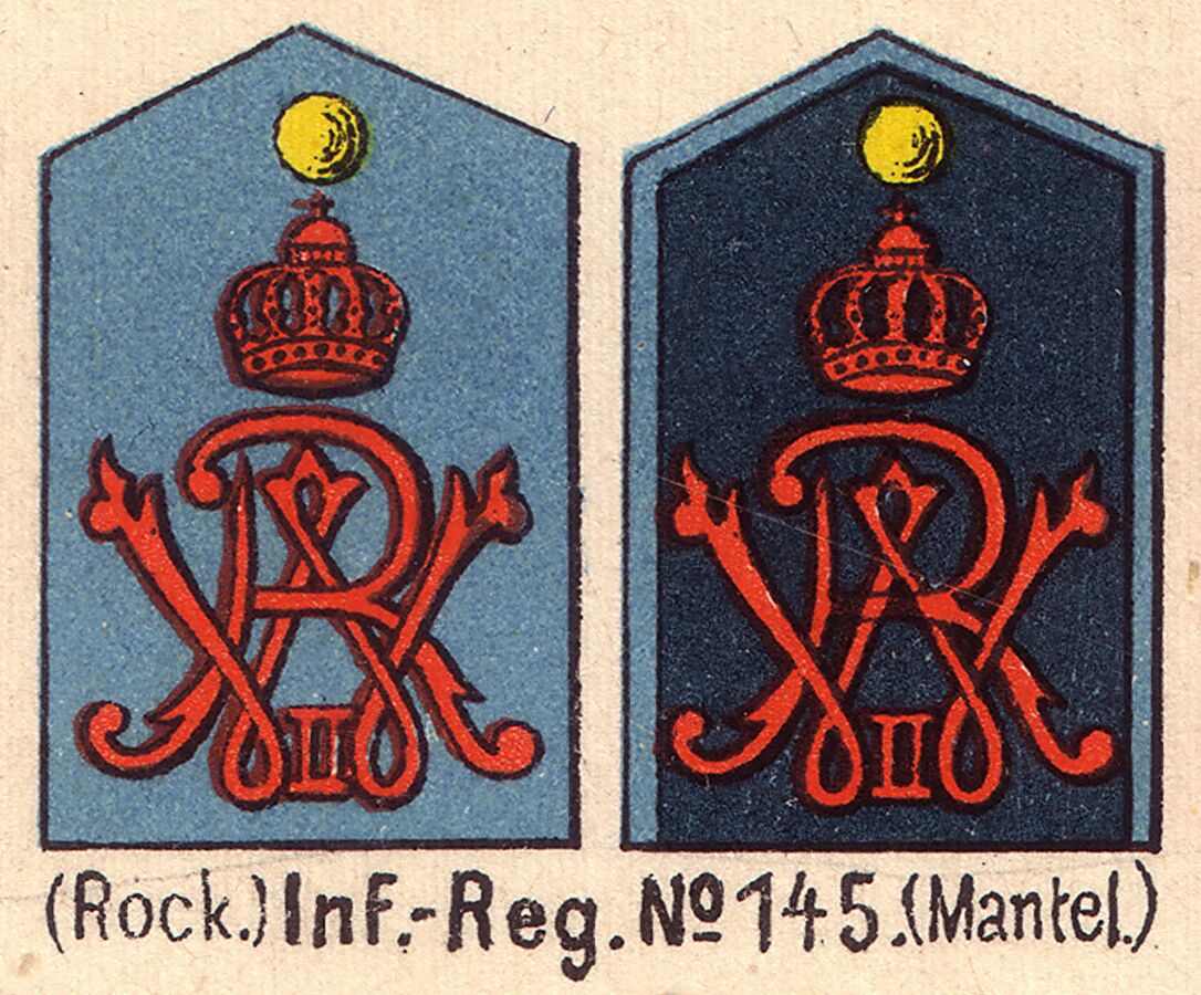 Dem Königsinfanterieregiment 145 (6tes lothringisches).Die hatten auch die Königskrone auf den Schulterklappen.