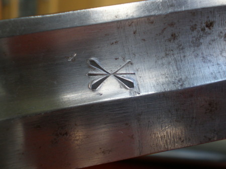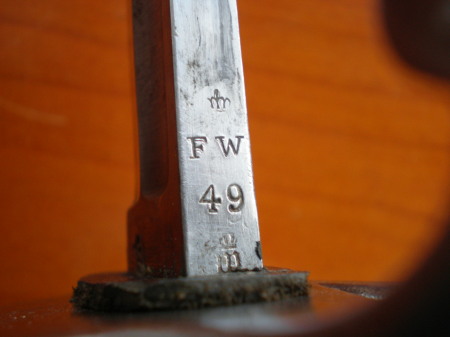 preuß. Abnahmestempel; englischer Ausmusterungstempel auf der Klinge und der Scheide.