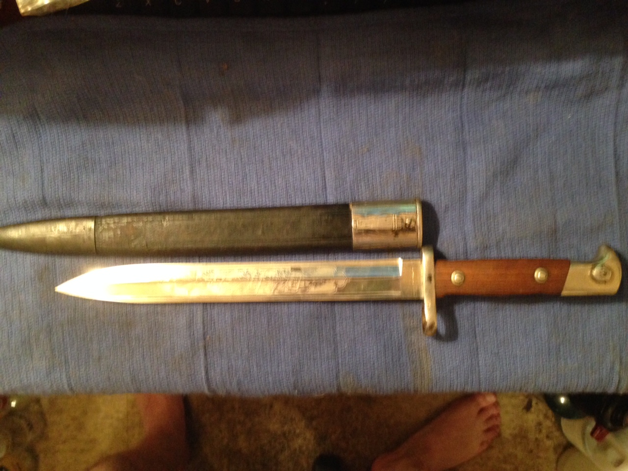 K: Dieser Bayonett passt sehr leicht im Scheide...Der Ortblech ist langer als gewohnlichem, sehen Sie bitte, mehr fotos hierum...