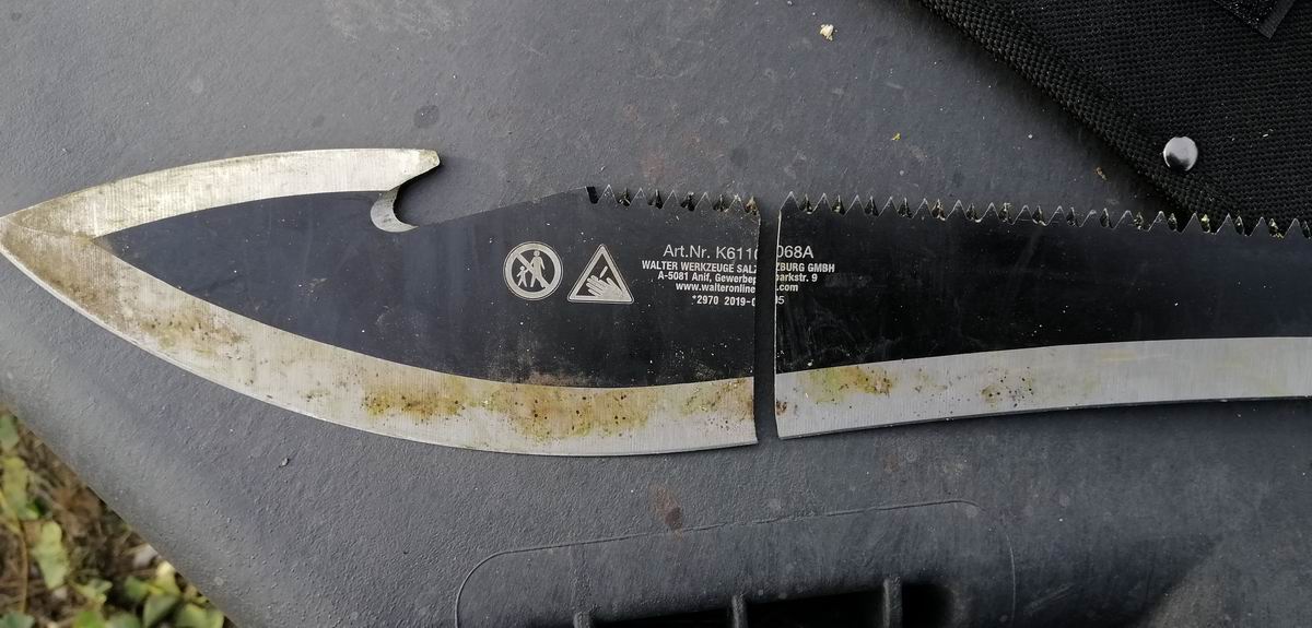 Die letzten drei Fotos zeigen den Vergleich mit einer "neuen" Powertec Garden Machete.