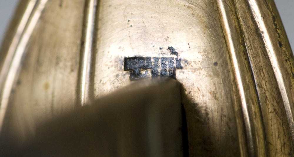 Der Name befindet sich auch auf dem Gefäß, allerdings kann man ihn nur noch erahnen. Zusätzlich gibt es noch einen Stempel auf der Fehlschärfe - weiß vielleicht jemand, was dieser zu bedeuten hat?