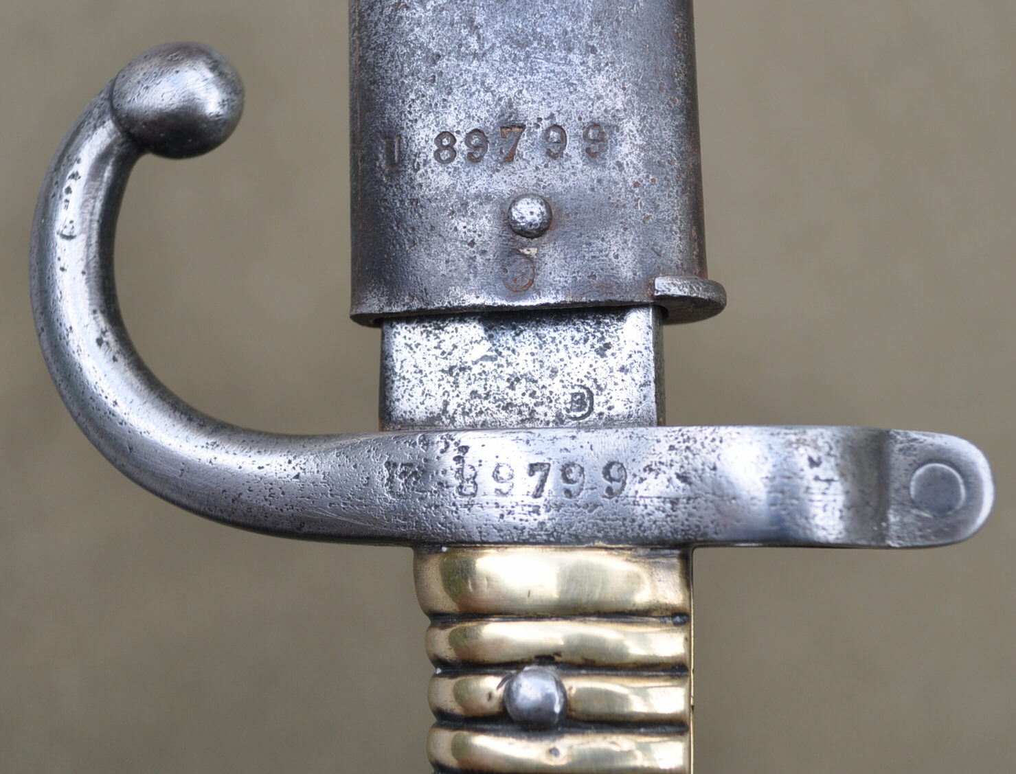Das Bajonett hat das Stigma der L und M auf der Klinge.