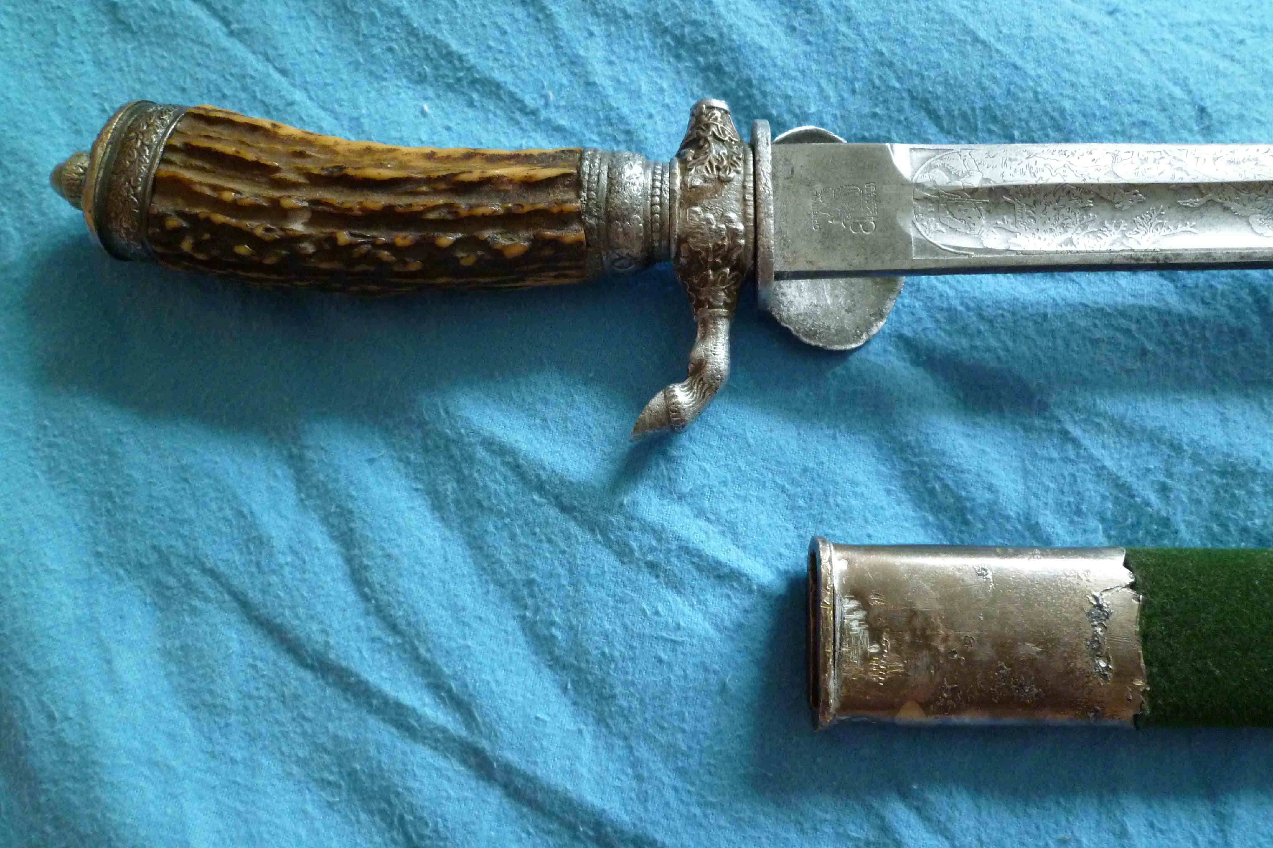 Rebhuhnverzierung und Hirschgravur auf Scheide stark abgewetzt.