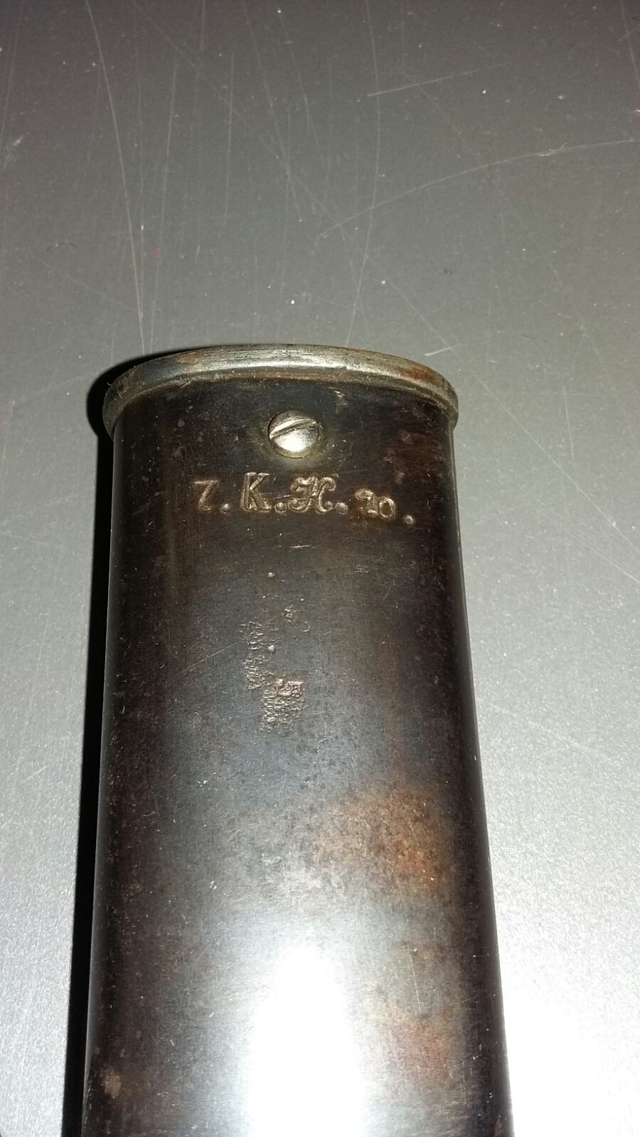 Der Stempel steht für die Handwerker Abteilung des 7. Kürassier-Regiments. Der Stempel weist zwar auf den Stab hin, zugeteilt wurden solche Waffen aber immer der Eskadron, welche im Mobilmachungsfall als Ersatz-Eskadron zurück blieb.