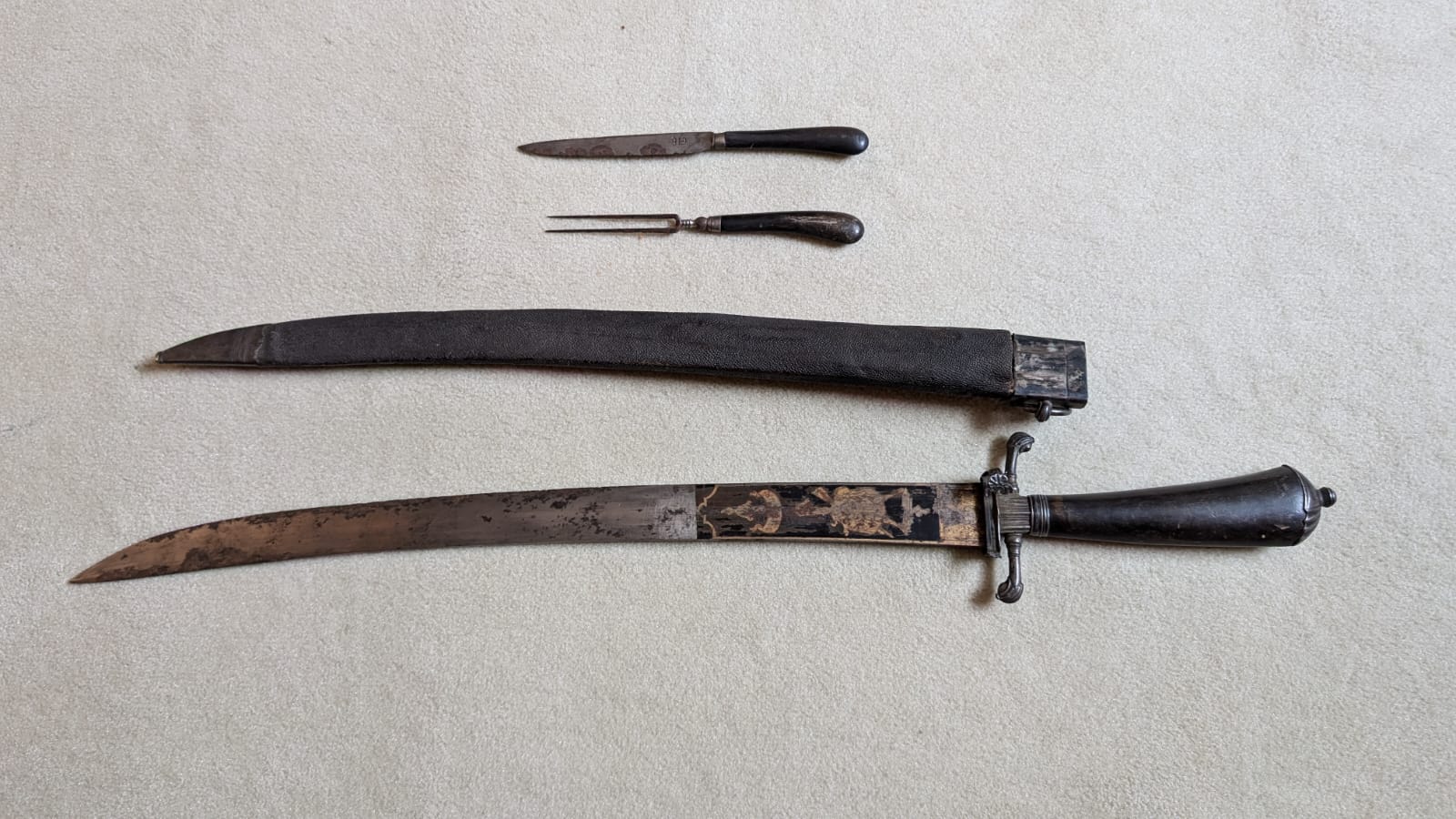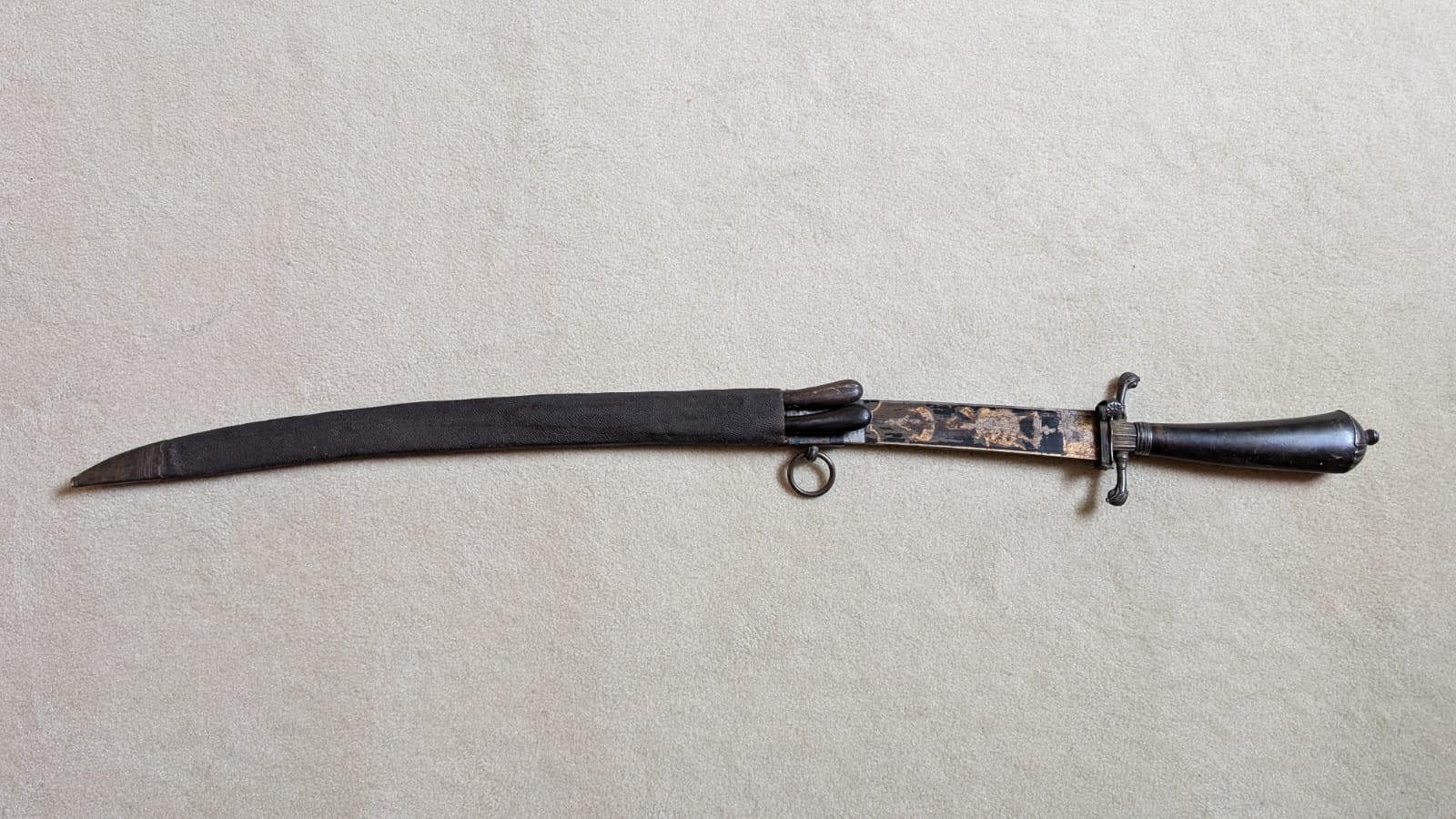 Dies wird dort als Pandurenmesser geführt, was natürlich im Falle dieser Plautenform durchaus auch sein kann. Für den jagdlichen Zweck ist der gedrechselte Griff ja auch etwas ungewöhnlich.