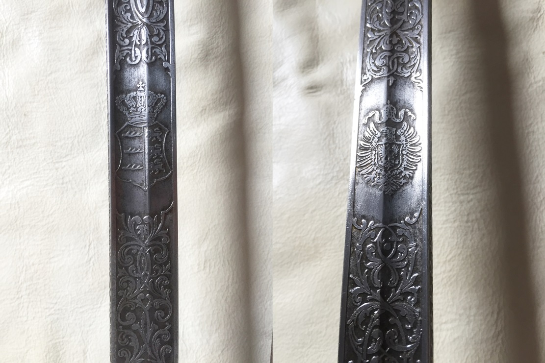 Württemb. Extra- Säbel für Berittene M 1868 als Variante, Mit Klingenätzungen das württembergische Wappen und den Reichsadler.