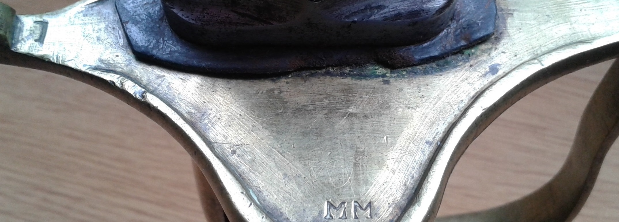 Die Klinge stammt nicht von einem Artilleriesäbel, sondern vom Pallasch für Kavallerie m/1773. Der "P" - Stempel war bereits auf der Klinge vom Pallasch.