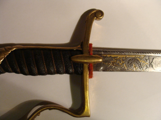 Der Säbel hat übrigens tatsächlich ( siehe Hinweis von Ulfbert ) die Händlerinschrift " G.H.Osang in Dresden " auf dem Klingenrücken.