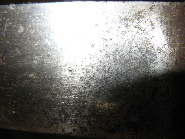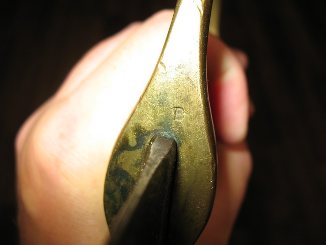 Auf der Bügelaußenseite, sowie unterhalb der Klingenschulter befindet sich die