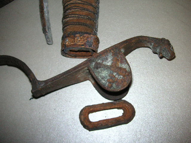 Die Griffbelederung kann man mit etwas Mühe auch wieder anbringen, die Drahtwicklung scheint ja noch vorhanden zu sein. Siehe auch hier: http://www.deutsches-blankwaffenforum.de/topic.php?id=6160&goto=newpost&