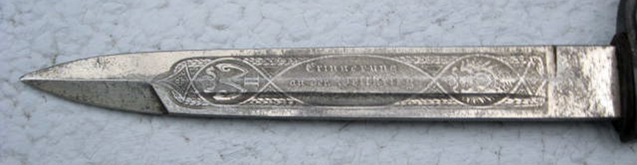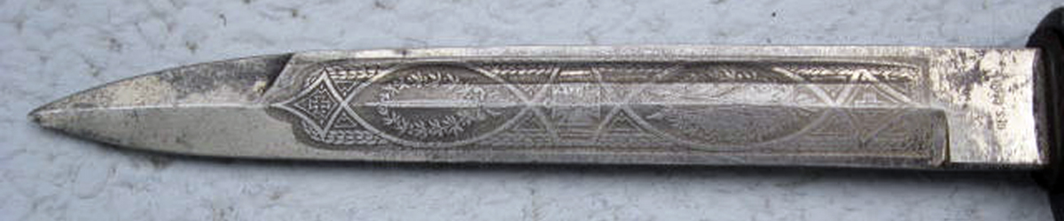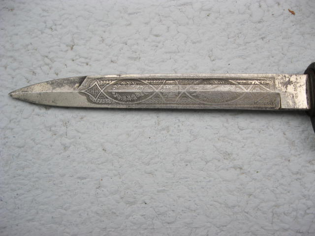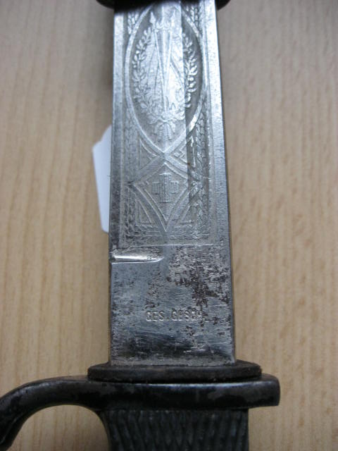 auf dem Seitengewehr in der Auktion stand "Erinnerung an den Weltkrieg", das lese ich auch auf der Klinge der hier vorgestellten Waffe.