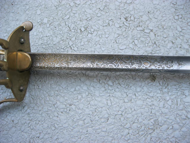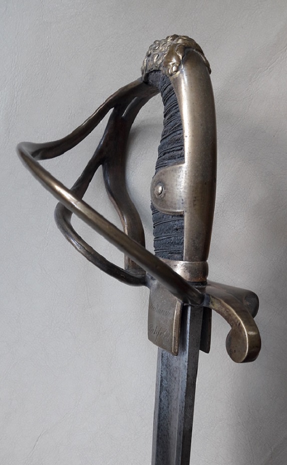 Besondere Aufmerksamkeit hat allerdings bei mir der Säbel auf der rechten Seite erregt. Ein "Löwenkopfsäbel" der mit zwei Terzbügeln versehen ist, die eine Art "festen Korb" bilden.
