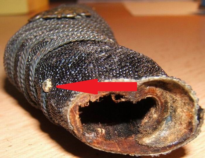 -Die Scheide wurde komplett abgeschliffen und (schlecht) geschwärzt.