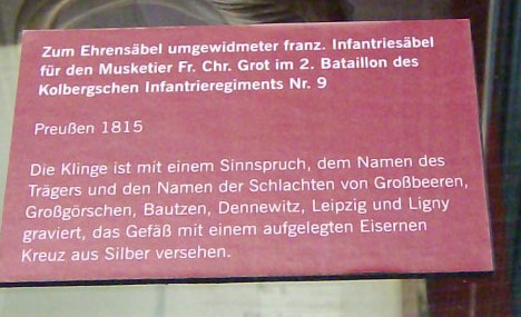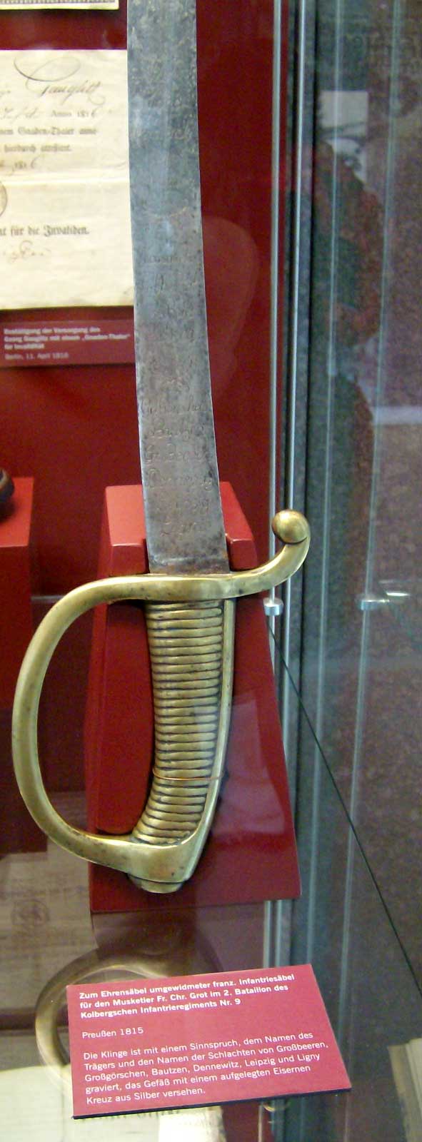 Ehrensäbel im kolbergischen Infanterie-Regiment Nr. 9 von 1815