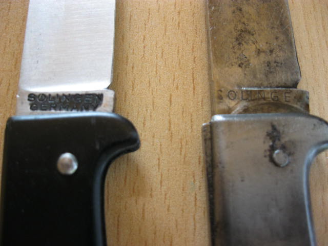 Möchte hier zwei MERCATOR-Messer aus Solingen vorstellen.Das erste ist das ältere u.trägt auf der Klinge die Werbeaufschrift " Spar u.-Darlehenskasse, Ort," der aber schlecht zu entziffern ist.