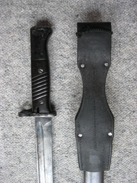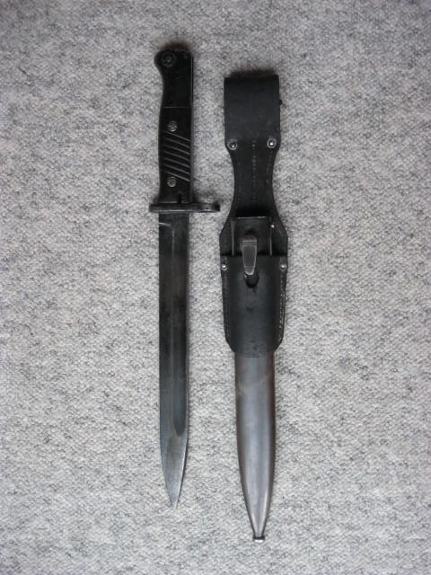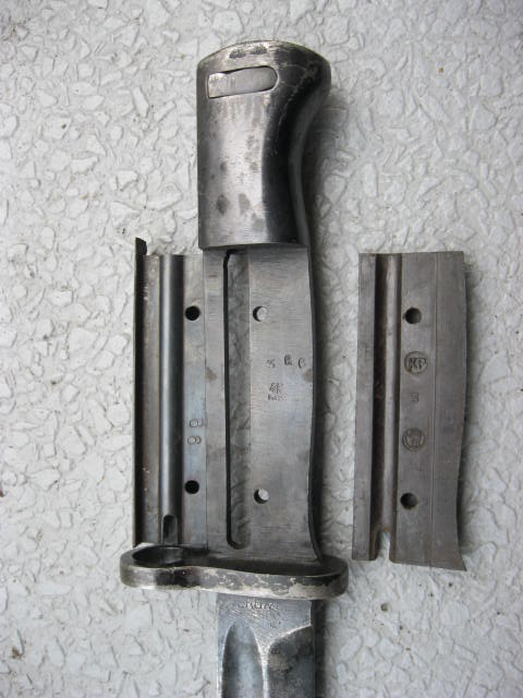 ist das Feuerblech oben geriffelt? Mach mal Detailbilder der Parierstange, auf den ersten Blick hätte ich gesagt der ist ursprünglich von einem wz28, aber die Bilder sind dazu viel zu schlecht. Das Bajonett ist auf jeden Fall ein WH Fertigung.