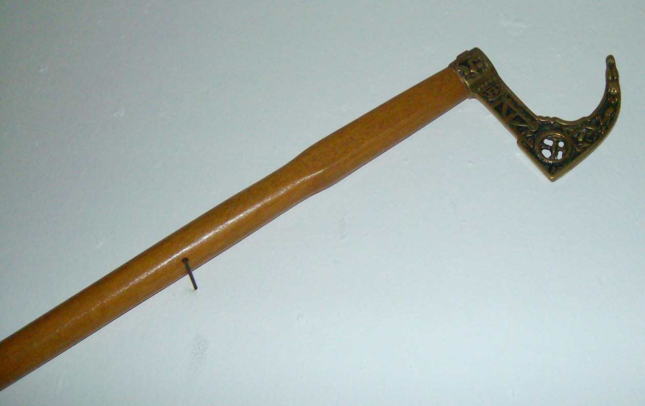 Die ungewöhnliche Verschraubung der Griffkappe mit der Parierstange läßt sich auch bei sächsischen Gerichtsdienern- und Gefangenenaufseher-Seitengewehren nachwiesen.